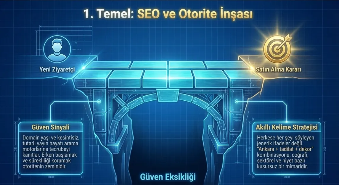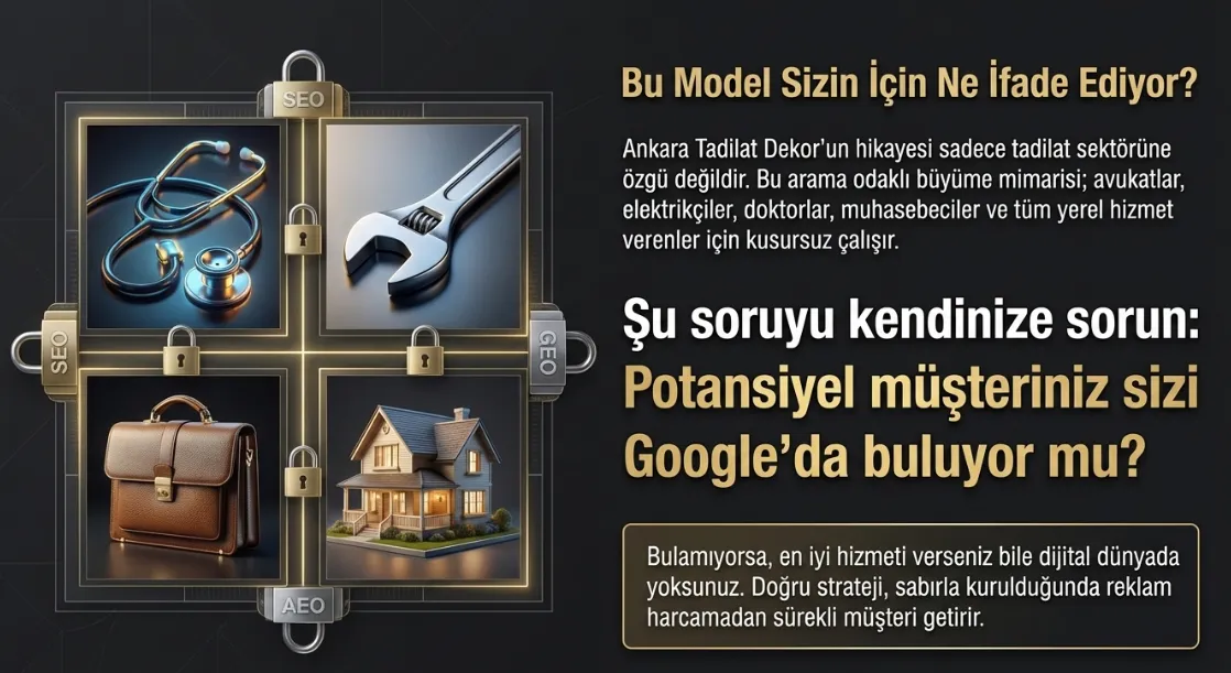 Ankara Tadilat Dekor vakası, arama odaklı büyümenin somut bir örneği. Bu modelde firma; reklam bütçesine değil, Google’ın güvenine yatırım yapıyor.