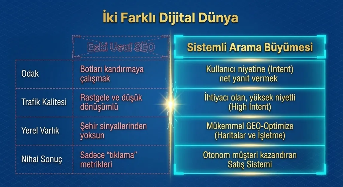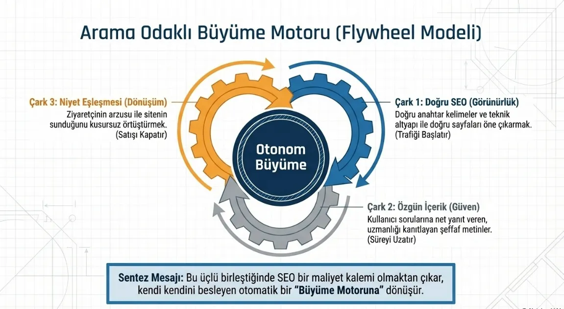 Bu üçü bir araya geldiğinde SEO artık bir maliyet kalemi değil, büyüme motoru oluyor.